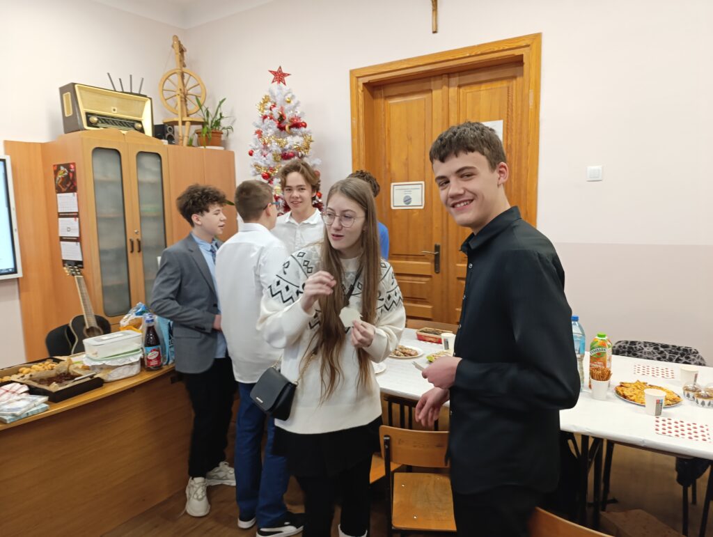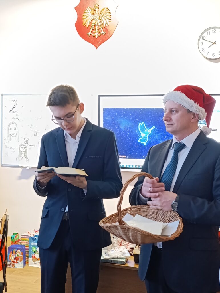 100% frekwencja!!! Każdy przyniósł prezent dla kogoś. Była modlitwa, kolęda „Wśród