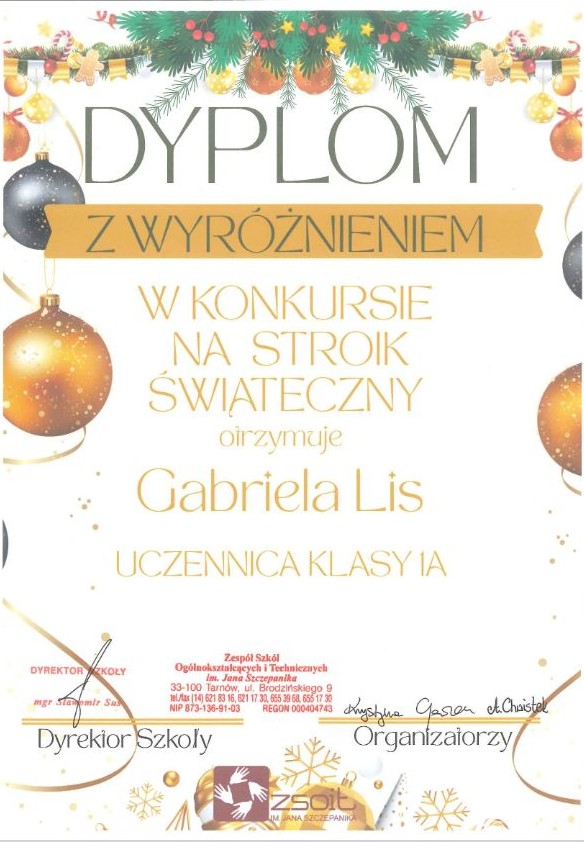 Narodzenia. Nasza koleżanka Gabrysia Lis zdobyła wyróżnienie w konkursie na