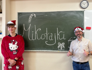2 grudnia w naszej klasie odbyły się mikołajki, które wprowadziły wszystkich w świąteczny nastrój. Wydarzenie zostało zorganizowane przez uczniów, którzy z dużym zaangażowaniem zadbali o miłą atmosferę. Najważniejszym punktem spotkania było wręczanie prezentów, na które wszyscy czekali z niecierpliwością.