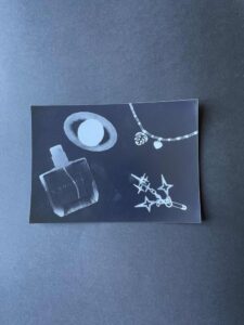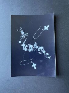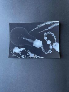 Naświetlamy papier fotograficzny z wybranymi przedmiotami a następnie wywołujemy poprzez umieszczenie w chemikaliach. Na koniec przepłukujemy i suszymy.