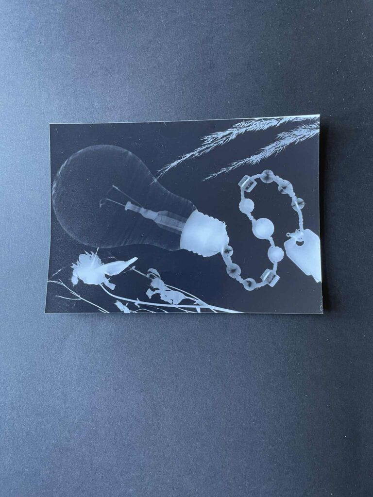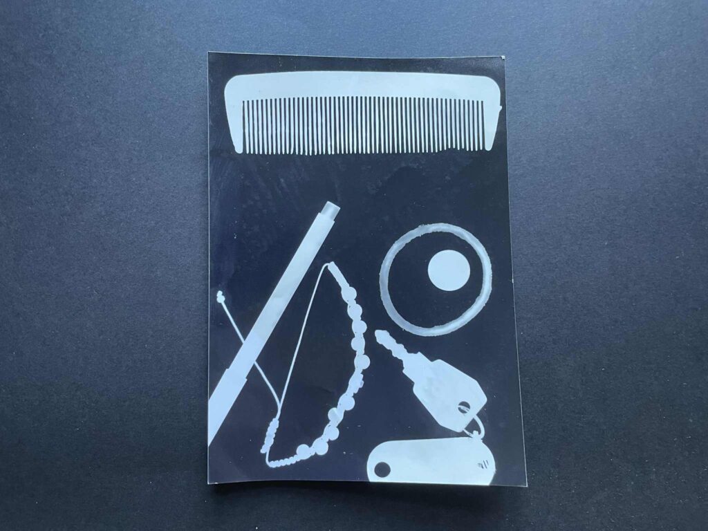 Naświetlamy papier fotograficzny z wybranymi przedmiotami a następnie wywołujemy poprzez umieszczenie w chemikaliach. Na koniec przepłukujemy i suszymy.