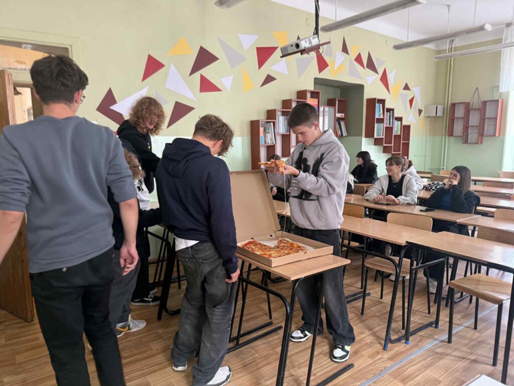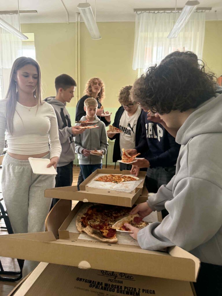 Natomiast chłopcy z naszej klasy zostali dodatkowo wyróżnieni – specjalnie dla nich zamówiliśmy pizzę, którą zjedliśmy wspólnie podczas lekcji wychowawczej. Była to świetna okazja do integracji i wspólnego świętowania.