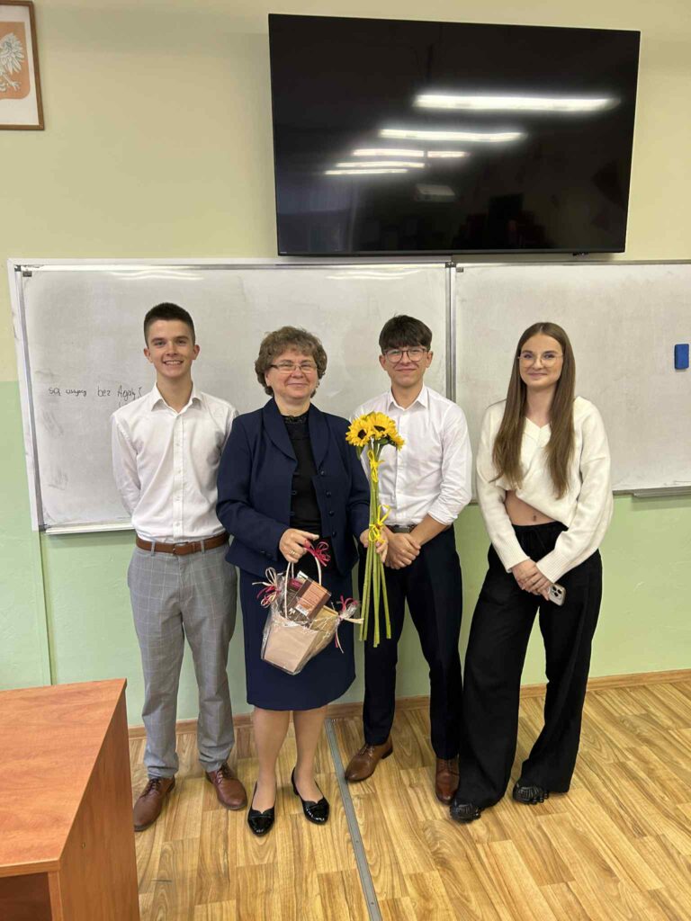 15 października obchodziliśmy wyjątkowe święto – Dzień Nauczyciela, czyli Dzień Edukacji Narodowej. To szczególny moment, w którym możemy podziękować naszym nauczycielom i wychowawcom za ich trud, cierpliwość i codzienną pracę.Z tej okazji wręczyliśmy swoim nauczycielom i wychowawczyni drobne prezenty, słodkie upominki. Chcieliśmy w ten sposób wyrazić naszą wdzięczność za ich poświęcenie i troskę o naszą edukację.