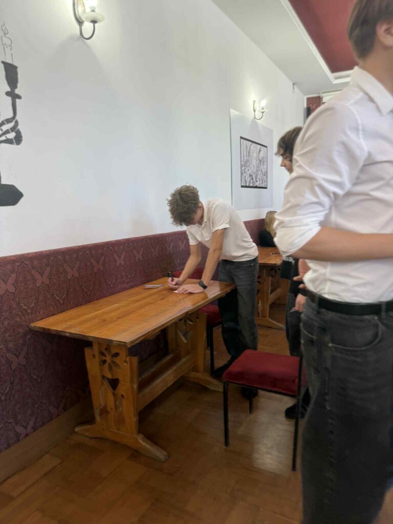 Filip R. promował klub debatancki, zachęcając do dołączenia i opowiadając o jego działalności. Marcin z kolei prezentował nasz profil edukacyjny, odpowiadając na pytania i dzieląc się swoimi doświadczeniami.