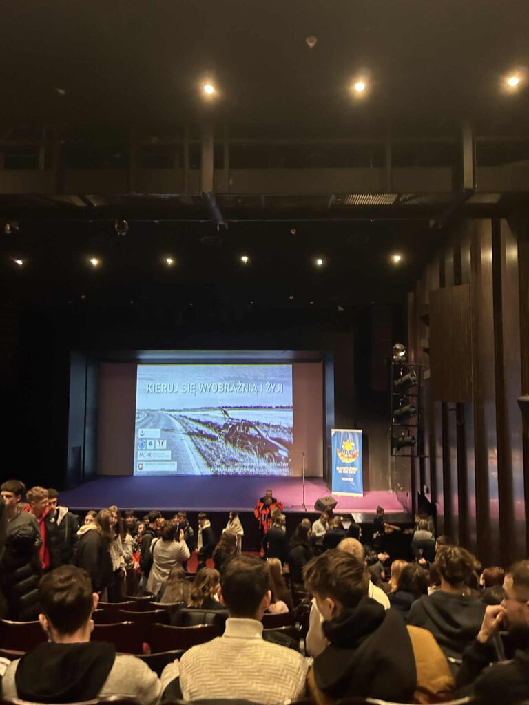 3 listopada, nasza klasa wzięła udział w wyjątkowej akcji edukacyjnej „Kieruj się wyobraźnią i żyj”, która odbyła się w teatrze. Wydarzenie miało na celu zwiększenie świadomości młodzieży na temat bezpieczeństwa w ruchu drogowym oraz odpowiedzialnych zachowań – zarówno jako piesi, pasażerowie, jak i przyszli kierowcy.