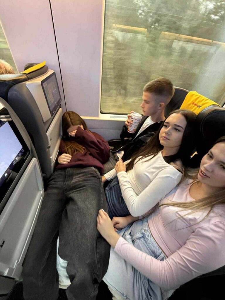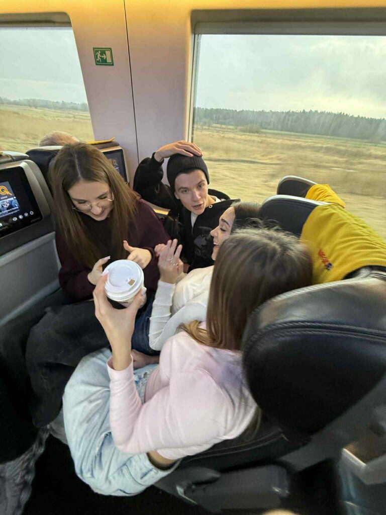 Po dotarciu na miejsce poruszaliśmy się tramwajami, gdzie panowała równie radosna atmosfera. W pewnym momencie zaczęliśmy nawet śpiewać w tramwaju, co wywołało uśmiechy nie tylko na naszych twarzach, ale też u pasażerów. To był jeden z tych momentów, które zapamiętamy na długo.