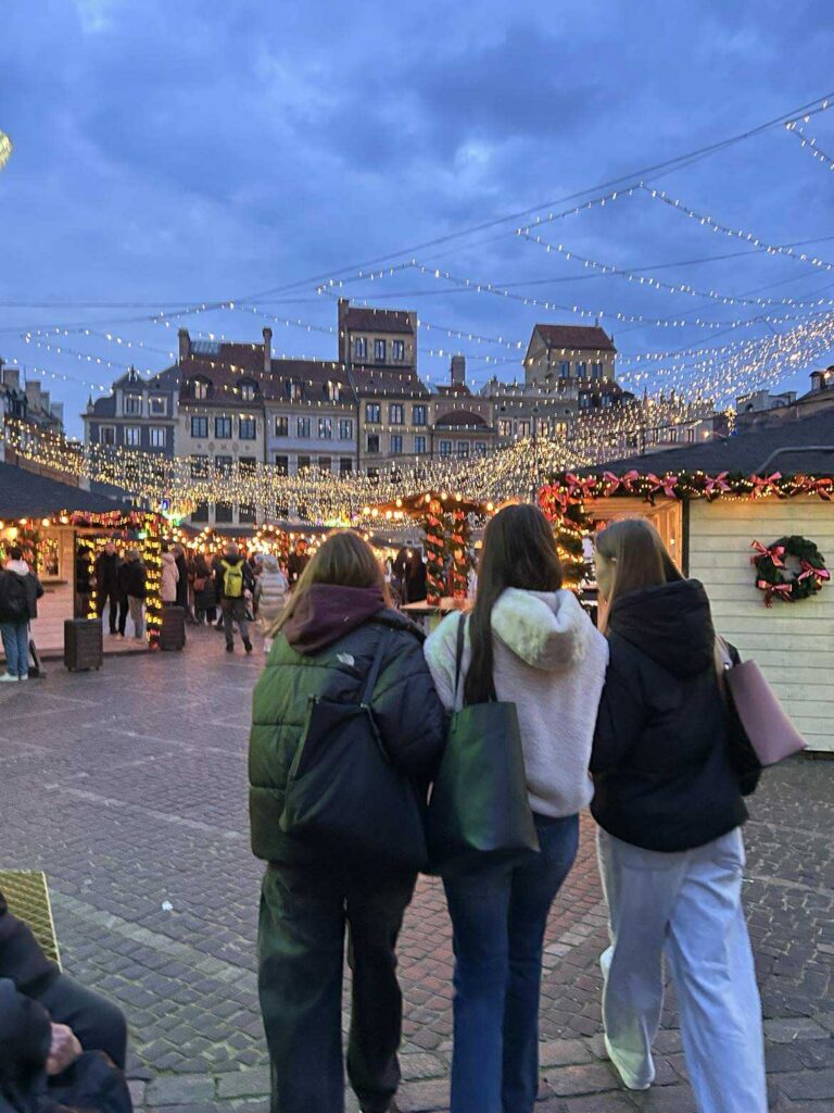 Następnie odwiedziliśmy dwa warszawskie jarmarki. Panowała tam wyjątkowa atmosfera: kolorowe stragany, zapachy pysznego jedzenia, rękodzieło i świąteczne dekoracje sprawiały, że każdy znalazł coś interesującego. Niektórzy kupili pamiątki, inni spróbowali nowych smaków, a wszyscy podziwiali pięknie przygotowane stoiska.