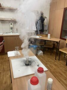 W ostatni piątek września odbyła się noc naukowców w naszej szkole. Wiele z nas rano pomagało w przygotowaniach do sali geograficznej do tego wydarzenia. Niektórzy z nas brali udział w pokazach eksperymentów chemicznych.
