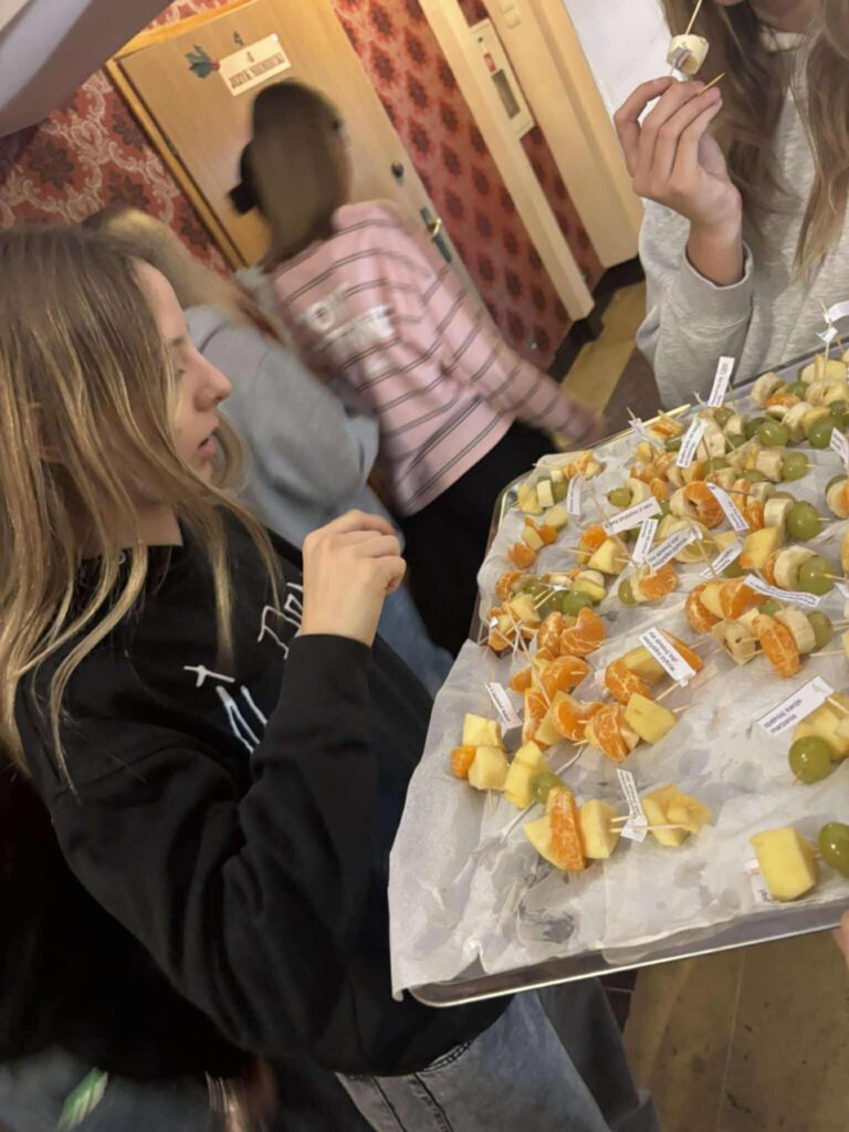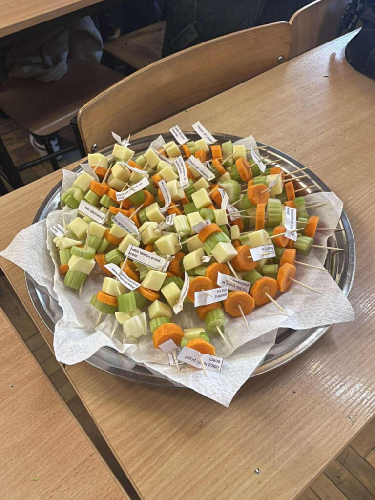 6 października nasza klasa organizowała Dzień Zdrowego Śniadania. W pierwszej kolejności stworzyliśmy, krótkie nagranie do radiowęzła na temat zdrowego odżywiania i antyoksydantów. Następnie nasza klasa stworzyła szaszłyki warzywno-owocowe, które reszta uczniów naszej szkoły mogła skosztować.