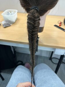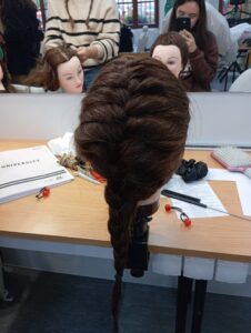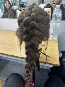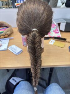 Dnia 08.10.25r. na zajęciach z fryzjerstwa wykonywałyśmy różne fryzury na główkach