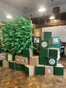 Dnia 2.12.2022r. kilka osób z naszej klasy pomagało w ozdabianiu szkoły. Ozdoby na choince zostały wykonane przez uczniów naszej klasy na zajęciach z panią Małgorzatą Wroną.