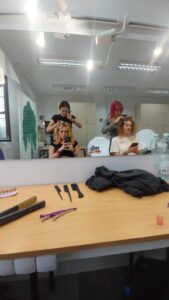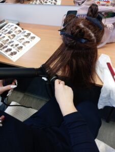 Dnia 29.10.25r. na modelowaniu i stylizacji fryzur uczyłyśmy się robić loki na lokówkach