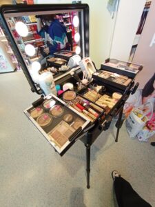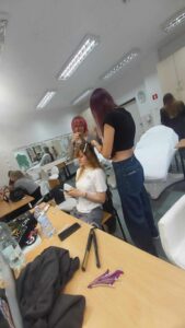 Dnia 24.02.25r. na zajęciach wykonywałyśmy makijaż wieczorowe, a niektóre z nas pomagały układać nowe kosmetyki, które szkoła otrzymała
