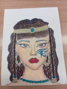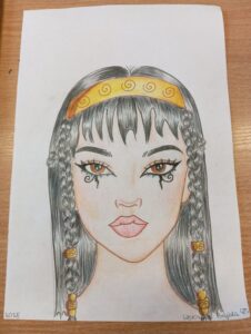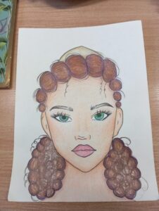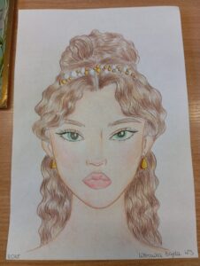 W październiku na zajęciach z historii fryzur rysowałyśmy współczesne odzwierciedlenie fryzur ze starożytnego Egiptu oraz Grecji i Krety
