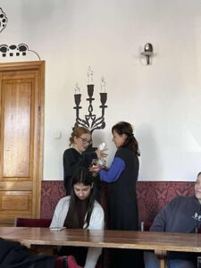 Dnia 31.03.25r. nasza klasa miała próbne makijaże lat 20 oraz przymiarki ubrań na dni otwarte