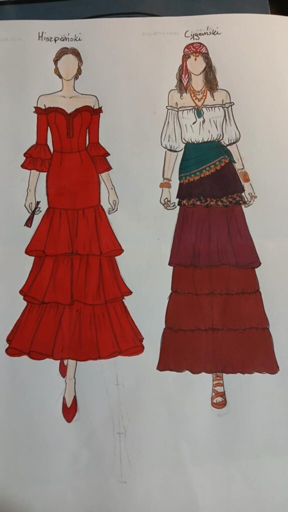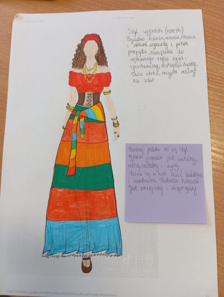 We wrześniu na zajęciach z kreacji wizerunku wykonałyśmy projekty stylizacji w stylach: rustykalnym, cygańskim i hiszpańskim