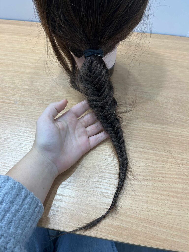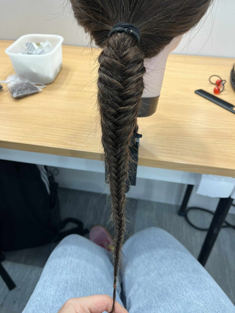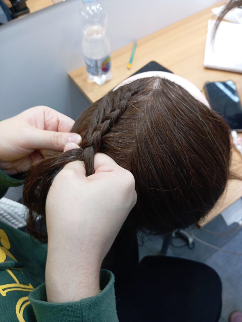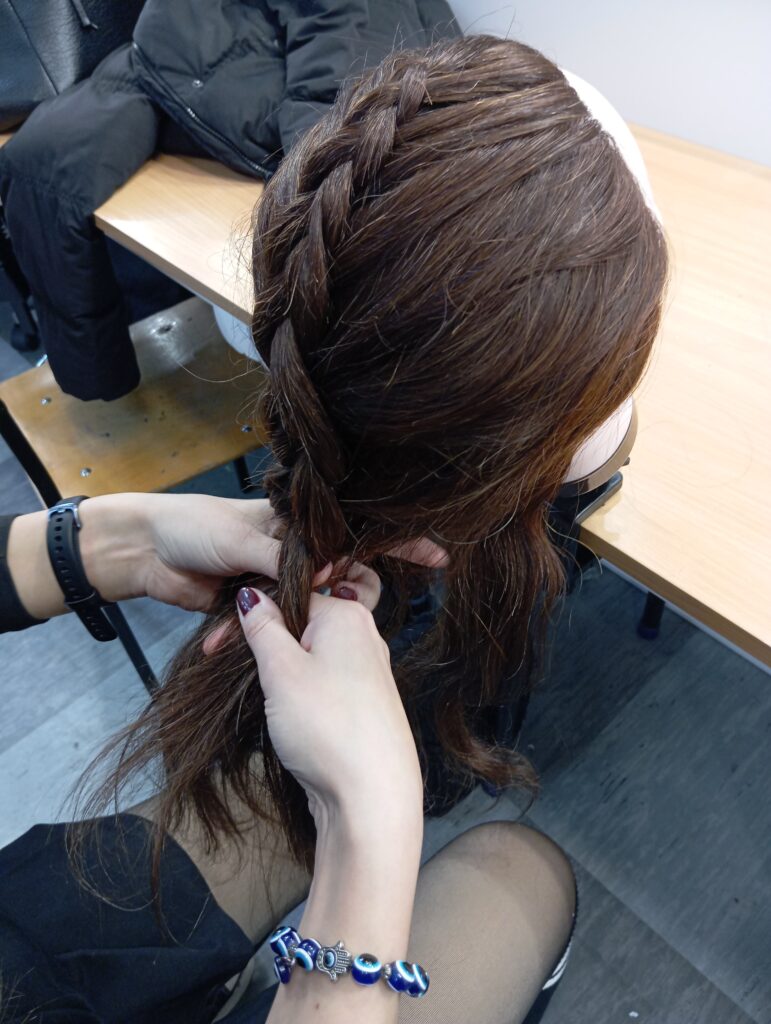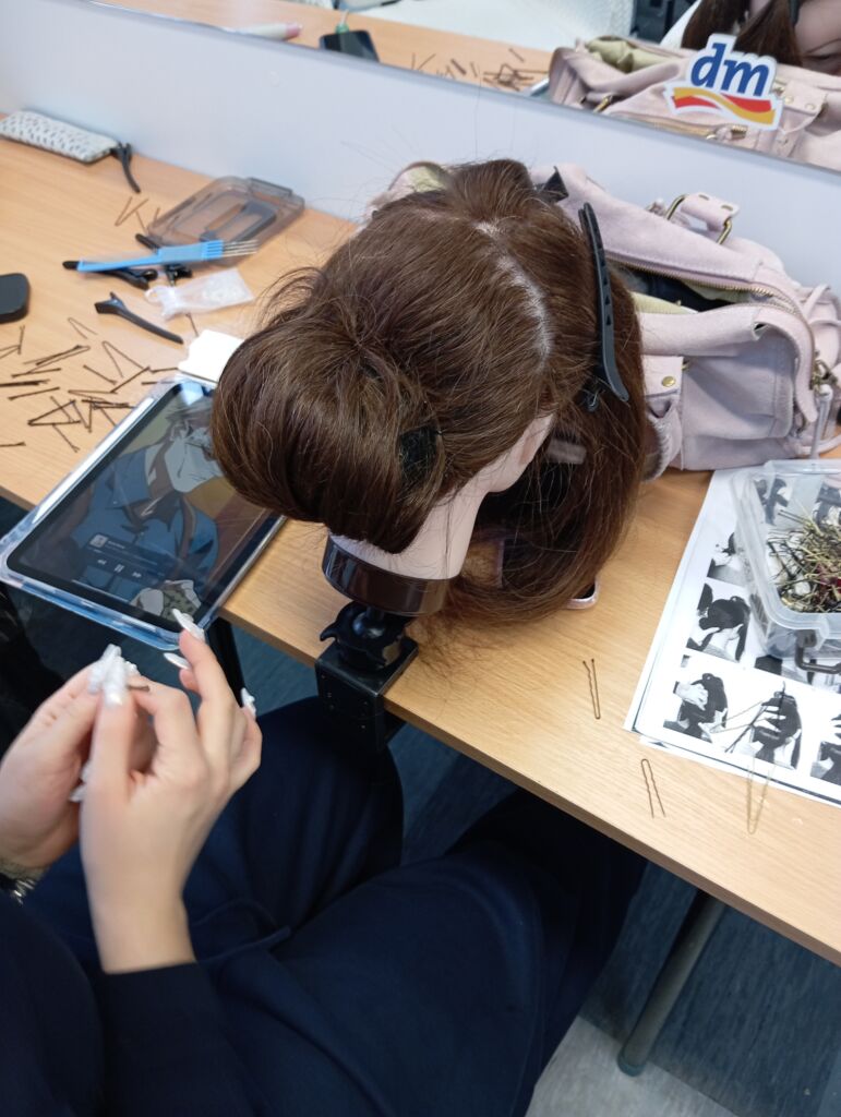 Dnia 08.10.25r. na zajęciach z fryzjerstwa wykonywałyśmy różne fryzury na główkach