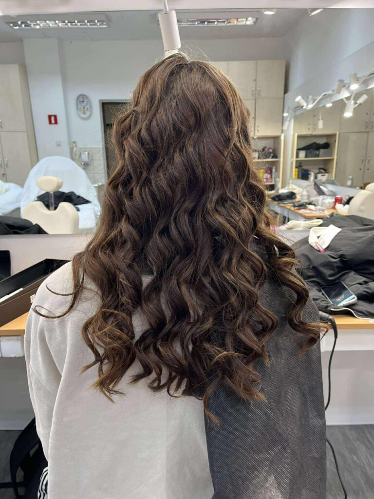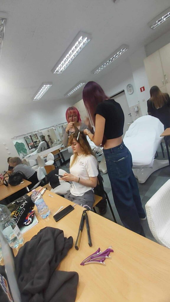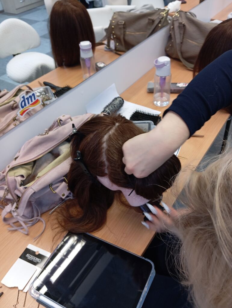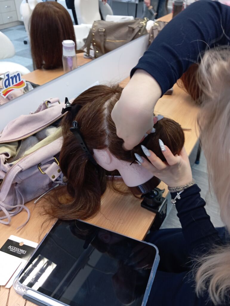 Dnia 29.10.25r. na modelowaniu i stylizacji fryzur uczyłyśmy się robić loki na lokówkach