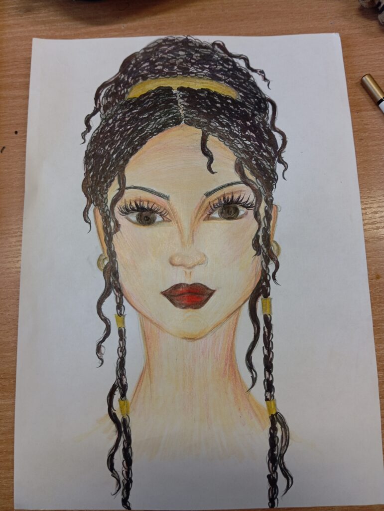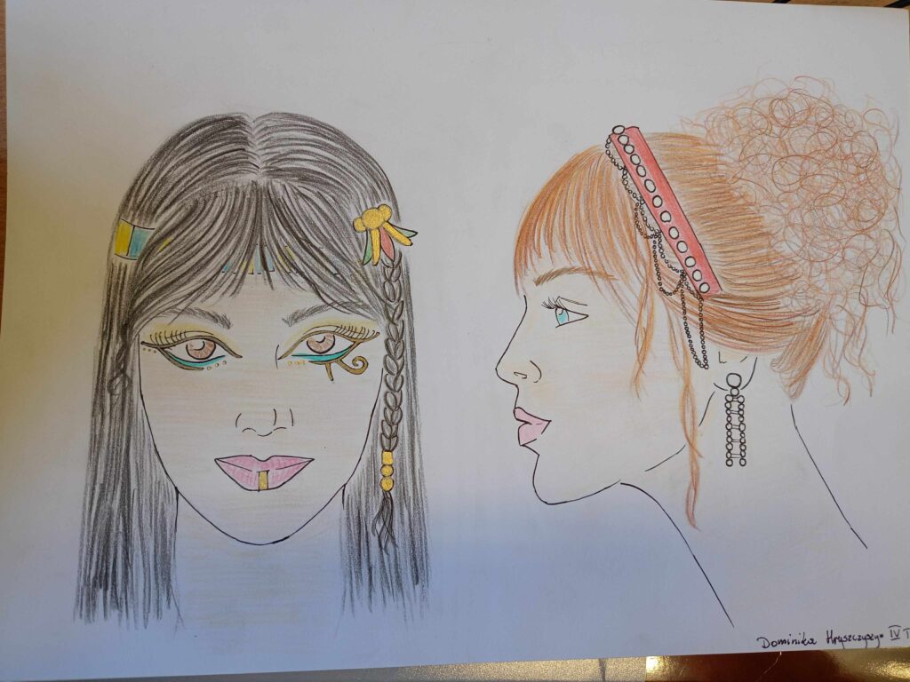 W październiku na zajęciach z historii fryzur rysowałyśmy współczesne odzwierciedlenie fryzur ze starożytnego Egiptu oraz Grecji i Krety