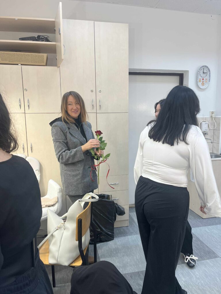 Dnia 07.03.25r. w szkole obchodziliśmy dzień kobiet. Z tej okazji nasz jedyny chłopak przygotował skromny upominek dla naszych nauczycielek oraz dziewczyn z naszej klasy.