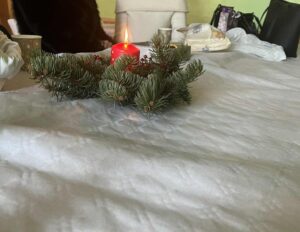 19 grudnia spotkaliśmy się na naszej ostatniej klasowej Wigilii. Odświętnie ubrani, składaliśmy sobie świąteczne życzenia oraz wspólnie spędziliśmy czas na rozmowie i śpiewaniu kolęd.